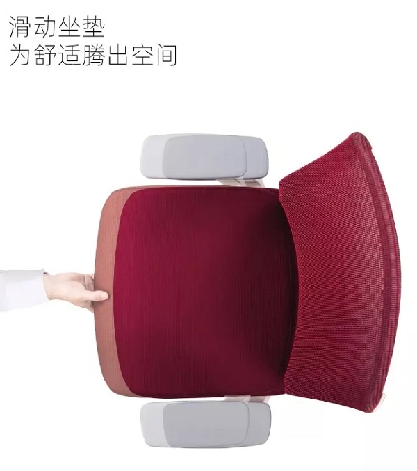 隱藏式腰靠調(diào)節(jié)機(jī)制,保留座椅簡(jiǎn)約、時(shí)尚的外觀,通過上下推拉改變座椅腰部支撐點(diǎn),滿足不同體型用戶對(duì)腰部承托力度的需要。